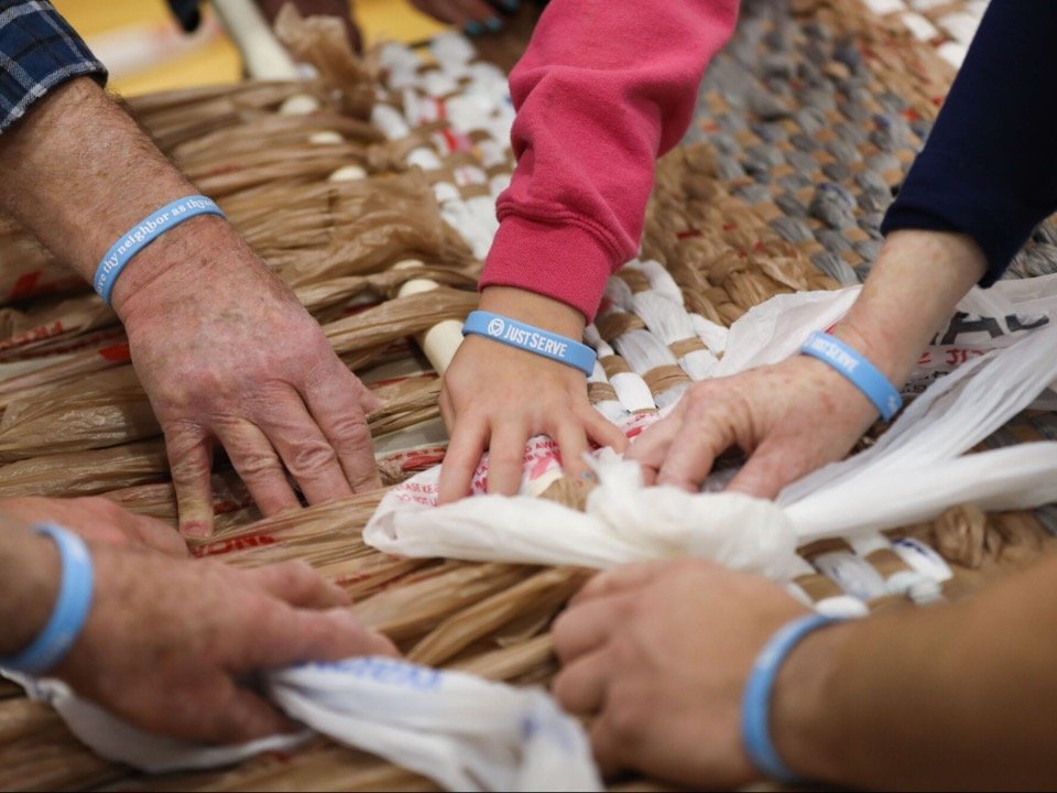 Volunteers, roll up those sleeves, link plastic bags like a champ, and whip up some cozy sleeping mats out of plarn magic!